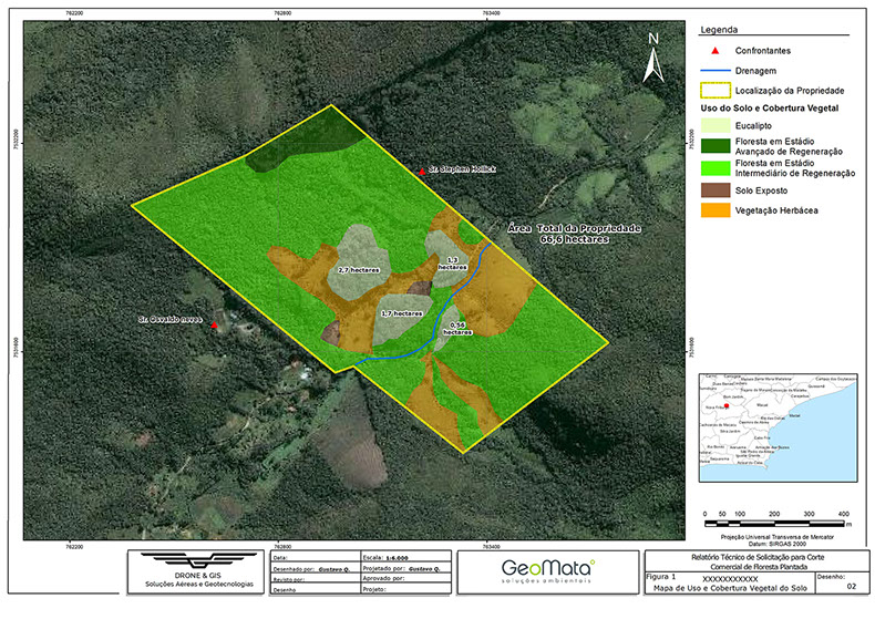 A Drone & GIS desenvolveu para a empresa Geomata - Soluções Ambientais a interpretação e o mapeamento de Uso do Solo e Cobertura vegetal (com geração de produtos cartográficos), em uma área de aproximadamente 62 hectares para composição de mapas para Estudo Ambiental.