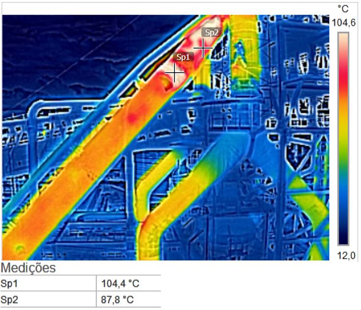 O objetivo da inspeção foi identificar discrepâncias de temperatura nas tubulações dos dois alto fornos da companhia. Localizar esses pontos críticos foi fundamental para o desenvolvimento de planejamentos específicos da companhia e evitar eventuais problemas no futuro.